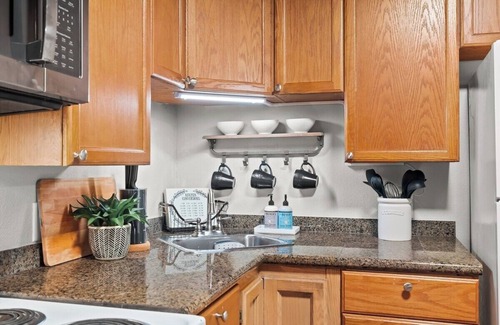 Este alojamiento de 2 dormitorios y 1 baño cuenta con una zona para barbacoas, escritorio y oficinas. El cuarto de baño incluye un secador de pelo y toallas. La cocina está equipada con horno, placa de cocina y frigorífico, además de cafetera y tetera, microondas y utensilios de cocina. Podrás viajar con poco equipaje, porque tendrás una lavadora y una secadora a tu disposición.