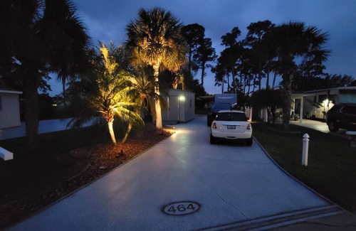 RV Site for Rent at The Great Outdoors Resort backed up to the 14th green | Complejo en Titusville