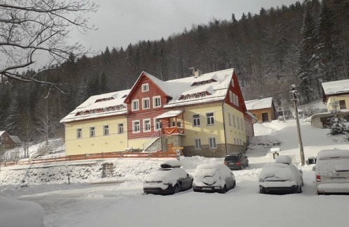 Casa de apartamentos "Pod Mariánskými schody", idóneo para niños, moderno. 10 apartamentos en la propiedad. A 5 km de la zona de esquì, a 100 m del río. Comunitario: terreno. Muebles de jardín, barbacoa, lugar para hoguera, parque infantil (tobogán, cajón de arena). En el complejo: bañera de hidromasaje, tenis de mesa, billar, sala de juegos, futbolín, trampolín, sala para guardar bicicleta, sala guardaesquís, calefacción central, lavadora, secadora para botas de esquí. Aparcamiento en el mismo terreno, extra. Tienda 2 km, supermercado 7 km, restaurante 2.5 km, bar 2.5 km, panadería 2.5 km, parada autobús "Desná centrum" 2.5 km, estación de tren "Desná centrum" 2 km. Rutas de senderismo desde la casa 500 m, telesquí 6 km, alquiler de esquís 6 km, escuela de esquí 6 km, escuela de esquí para niños 6 km, pista de esquí de fondo. Atracciones en los alrededores: Protržená přehrada 6 km, Mariánské schody 400 m, Rozhledna Světlý vrch 2 km, Skokanské můstky Desná 850 m, Vodopády na Černé Desné 5 km, Riedlova hrobka Desná 3 km. Zonas de esquí populares fácilmente accesibles: ski area Albrechtice 6 km, ski area Černá říčka 6 km, ski area Špičák 7 km. Lagos conocidos fácilmente accesibles: přehrada Souš 7.5 km. Zona de senderismo Jizerka 16 km, Mariánská hora 2 km. A tener en cuenta: adecuado para familias.