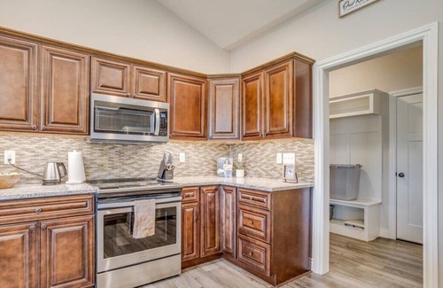Este alquiler de vacaciones cuenta con una sala de estar, chimenea, caja fuerte y aire acondicionado. El cuarto de baño incluye un secador de pelo, toallas y papel higiénico. La cocina está equipada con horno, placa de cocina y frigorífico, además de cafetera y tetera, máquina de hielo y microondas. Y gracias a la lavadora y la secadora, podrás viajar con poco equipaje. Otras comodidades incluyen ropa de cama, un escritorio, una tabla de planchar y calefacción.