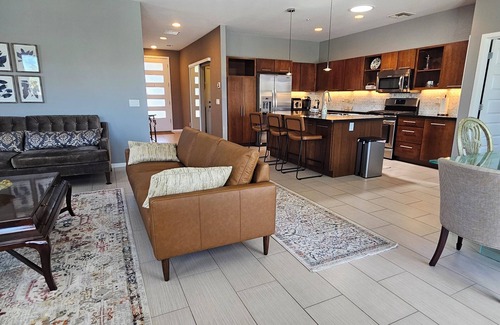 Este alojamiento de 3 dormitorios y 2 baños cuenta con un comedor, una zona para barbacoas y aire acondicionado. Disfruta del wifi gratis y de la televisión. El cuarto de baño incluye un secador de pelo, toallas y papel higiénico. La cocina está equipada con horno, placa de cocina y frigorífico, además de cafetera y tetera, hervidor eléctrico y máquina de hielo. Podrás viajar con poco equipaje, porque tendrás una lavadora y una secadora a tu disposición. Otras comodidades incluyen ropa de cama, calefacción y una mesa de comedor.