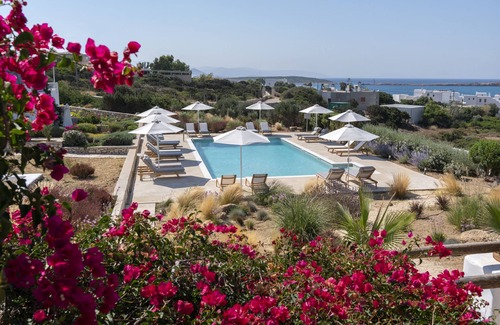 La villa, que forma parte de un complejo de 5 residencias con una gran piscina común construida en 2018, incluye 5 habitaciones con baño privado, una sala de estar, un comedor, una cocina totalmente equipada con lavavajillas, estufa, horno, horno de microondas y una nevera, una lavadora-secadora, TV inteligente de pantalla plana con suscripciones a Netflix y Amazon Prime, wifi gratuito en toda la propiedad, incluidas las áreas exteriores y la piscina, ropa de cama y toallas de lujo, así como amplio estacionamiento privado gratuito en la entrada de la villa. Los baños han sido completamente renovados en 2018. La villa se encuentra a 400 metros y 1 km de dos de las mejores playas de la isla (Santa María y Mikri Santa) y a 8 minutos en coche de Naoussa, el lugar de moda de la isla, que cuenta con restaurantes gourmet, tradicionales, tiendas y una muy buena vida nocturna.