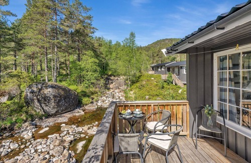 Casa de madera "Sandrabu", 450 m s.n. m pequeña, agradable, rústica, rodeada de árboles. A 12 km del centro de Kyrkjebygd, a 78 km del centro de Mandal, a 83 km del centro de Kristiansand, en el distrito Eikerapen, a 400 m de un lago, junto al riachuelo, en el campo. Privado: terreno en estado natural 480 m2, Aparcamiento junto a la casa. Tienda 12 km, parada autobús "Eikerapen" 180 m, terminal marítima "Kristiansand" 83 km, cala para bañarse 2 km, lago Øre 400 m. Posibilidades de pesca 2 km.
