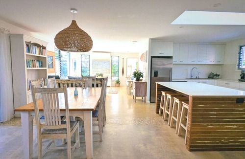Spacious, family-friendly beach house in East Ballina, just steps from Shaws Bay and a 5-minute walk to North Wall Beach and the Richmond River. Sleeps up to 10, ideal for families or group getaways. Enjoy a private pool, outdoor decks, and direct beach access. Perfect for a relaxing stay in the Northern Rivers with surfing, swimming, and outdoor adventures right at your doorstep.