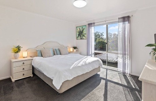 This 3 bedroom home is set over 2 x levels, master bedroom with ensuite is downstairs. 2 x bedrooms and an additional bathroom upstairs. The bed configuration consists of 1 x King, 1 x Queen and 2 x Singles with a trundle.Pick up some of our local seafood, unwind with a glass of wine, and savor the joy of cooking in the well-equipped kitchen. The backyard has been curated with love, catering for all of the family: From the kids (trampoline), the dog (Fully-fenced yard) and the adults (treetop gazebo), there is much to love about this special place! The bright and airy living space beckons you to relax. Whether you're sipping your morning coffee on the sun-kissed deck or gathering by the fireplace with friends, every moment is infused with the coastal spirit. Experience the epitome of outdoor living in the backyard gazebo, nestled amongst nature, a perfect spot to watch the sun rise or set. Explore the nearby attractions, from charming coastal towns to water activities and nature trails. Or simply allow the beach to be your go to, and enjoy one of the most pristine coastlines on the East Coast.