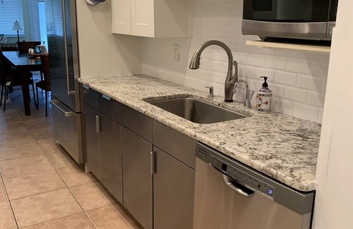 La cocina está recién renovada y cuenta con electrodomésticos gourmet de primera línea. Ubicada en el corazón de la casa ... ¡con una gran cantidad de espacio para que se reúna una gran familia, la gran estufa de calidad comercial es el sueño de un chef!
