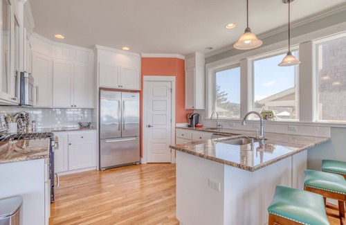 Planifique su próxima escapada a Sea Amor Oceanfront, una hermosa y nueva casa de lujo hecha a medida frente al mar en la encantadora comunidad de Olivia Beach en Lincoln City con impresionantes vistas al océano desde todas las habitaciones de la casa. Disfruta de magníficas puestas de sol desde la cubierta mientras observas a las ballenas nadar y las gaviotas a toda velocidad. Deje que sus preocupaciones floten en un jacuzzi frente al mar. Disfrute de una experiencia de spa en la ducha de vapor mientras descansa y relájese en la suite principal. La casa está impecablemente diseñada y bien equipada con muebles y decoración nuevos y elegantes. Sea Amor es un hogar libre de mascotas. Esta meticulosa casa de más de 2600 pies cuadrados con tres habitaciones incluye una sala multimedia, dos chimeneas, jacuzzi, ducha de vapor y dos cubiertas, y puede alojar cómodamente a siete. La casa tiene acceso directo a la playa justo al lado de la casa.