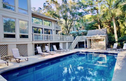 Sea Pines, Se aceptan mascotas, Casa de playa en la tercera fila con piscina privada, capacidad para 14 | Casa en Hilton Head Island