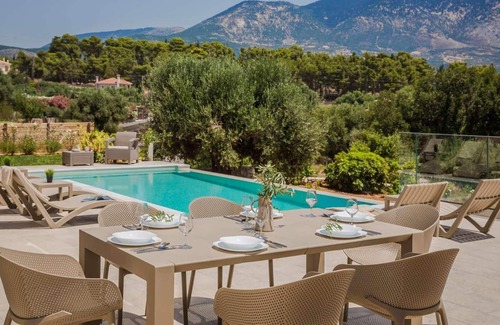 This spectacular modern villa is situated in a prime position to admire mountain and sea views. The views are best enjoyed lounging by the pool side terrace or cooling off in the infinity swimming pool. To encourage outdoor living the property also features a built in barbecue and dining facilities, perfect for dining al fresco. Inside the villa has been completed to a high standard, featuring a well equipped kitchen which is open plan to the stylish living and dining area. On the same floor there is a bedroom with a double bed and a bathroom and then upstairs you will find two modern en-suite bedrooms. Each bedroom has its own balcony with a wonderful view of the Ionian Sea. If you wish to explore the local area, for beach lovers the nearest sandy beach of Pesada is only 650m away, while Spartia beach is 4.5 km away. All bedroom and bathroom linen is included. Bath towels are also provided. This property comes with Free Wi-Fi, Free Air Conditioning, Free Cots, Free Highchairs.