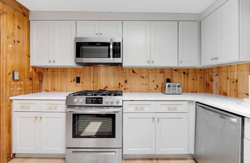 Este alojamiento de 4 dormitorios y 1.5 baños cuenta con un comedor, un sofá cama, una zona para barbacoas y aire acondicionado. El cuarto de baño incluye papel higiénico, jabón y champú. Prepara una comida casera en la cocina, equipada con horno, placa de cocina y frigorífico, además de cafetera y tetera, microondas y utensilios de cocina. Y gracias a la lavadora y la secadora, podrás viajar con poco equipaje.