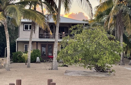 Perfecto para un retiro romántico o unas vacaciones familiares. El hogar es de 2 niveles. Esta casa frente al mar se encuentra directamente en el Caribe, con una playa natural aislada. Este listado es para el apartamento de 2 dormitorios / 1BA en la planta baja que cuenta con: entrada privada, terraza cubierta frente al mar, palapa con techo de paja al final del muelle de 100 pies para relajarse en el mar y observar la vida silvestre de cerca, internet de alta velocidad WIFI, Aire acondicionado, amplia cocina totalmente equipada y una sala de lavandería con lavadora y secadora modernas.