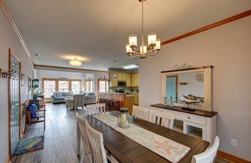 Shallowbag Bay 505, "Sounds-Fishy", es un condominio recientemente renovado de 3 habitaciones, 2 baños y medio, ubicado en la principal comunidad frente al mar de Shallowbag Bay Club en la isla de Roanoke en Manteo, NC, que ofrece vistas frente al mar y al puerto deportivo. La unidad de condominio se encuentra en el piso superior, un nivel, con acceso por elevador y es uno de los condominios con una ubicación más ideal que ofrece las mejores vistas panorámicas. La cubierta trasera domina el sonido de la línea de costa, el histórico Manteo se desplaza hacia el este a través del sonido hasta Jockeys Ridge. La cubierta delantera cuenta con un gran porche cubierto y una terraza con vistas al puerto deportivo. Nos encanta que la última planta, ya que permite las mejores vistas, brisas, amaneceres y puestas de sol.