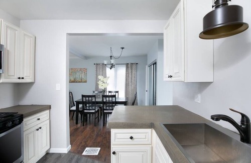 Ubicado a 3 puertas del famoso Christmas Story House Museum. La unidad está completamente renovada con acabados de alta gama para acomodar hasta 5 personas. Ubicado en un duplex. Esta es la unidad de arriba y tiene entrada privada. Cocina de piso abierto con encimera de concreto hecha a medida, juego completo de electrodomésticos de acero inoxidable. Cuenta con comedor, sala, lavandería en el lateral 2 baños completos y 2 dormitorios. Tv por cable y Wifi.