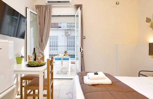Our Silver Hotel Athens Double Room with Balcony is a cozy and modern accommodation option for travelers visiting Athens. Our hotel has four separate studio rooms, each equipped with a comfortable double bed and all the amenities you need for a comfortable stay. The rooms are elegantly furnished and tastefully decorated, creating a warm and welcoming atmosphere for our guests.