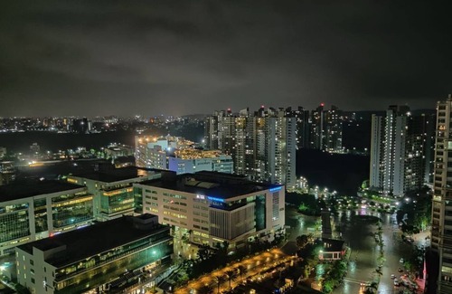 Nuestro apartamento está ubicado en el piso 22 con una magnífica vista de los cielos mirando hacia el club de golf desde todas las habitaciones. Se encuentra justo en frente de Blue Ridge SEZ, que tiene muchas multinacionales de TI. Al estar en el piso 22, definitivamente puede disfrutar de su tiempo con las nubes. Está fuertemente vigilado con seguridad. Solo profesionales que trabajan y parejas casadas solamente.