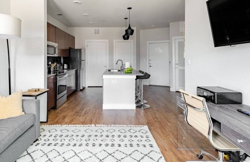 * Ubicado en el río San Antonio * Cerca del centro, UTSA, Centro de convenciones, Pearl Brewery y mucho más * 55 "y 43" 4K HDTV con Roku y Netflix * Cama tamaño Queen * Sofá cama * WiFi gratis súper rápido * En la unidad llena de gran tamaño con lavadora y secadora con detergente * Lavaplatos con detergente * Keurig con café, té y condimentos * Aire acondicionado centralizado y calefacción * Piscina comunitaria, gimnasio, área de parrilla (24/7) * Estación Bike Share * 1 estacionamiento gratuito lugar * Silla alta y silla de paseo * Sendero para caminar / andar en bicicleta en la propiedad