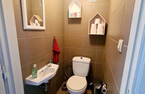 The second bathroom has a toilet and sink.