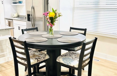 Prepara una comida casera en la cocina, equipada con horno, placa de cocina y frigorífico, además de cafetera y tetera, máquina de hielo y microondas. Disfruta del wifi y de la televisión. El cuarto de baño incluye un secador de pelo, toallas y papel higiénico. Podrás viajar con poco equipaje, porque tendrás una lavadora y una secadora a tu disposición. Otras comodidades de este alojamiento de 3 dormitorios y 2.5 baños incluyen ropa de cama, una tabla de planchar, aire acondicionado y calefacción.
