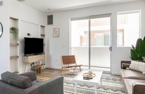 This modern townhome features an open floor plan that utilizes space and maximizes natural light. Oversized windows and sliding glass doors to an outdoor patio enhance the indoor/outdoor aesthetic, perfect for both relaxation and entertainment. The impressive kitchen features quartz countertops, Italian-inspired cabinetry, and stainless steel appliances. Other perks of this SoCal gem are a two-car garage, a BBQ, and a private balcony.Within walking distance, you will find the popular Harvest Moon Kitchen + Marketplace, The Fox Fire Room for cocktails, and casual eateries.