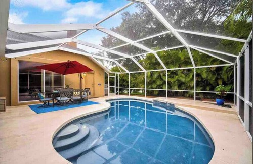 This newly remodeled home is perfect for families as it comfortably sleeps 13 people (8/9 adults + 4 to 6 kids) and is located in a peaceful, quiet, and family neighborhood. The home features a private screened area with a cozy heated pool, a spacious kitchen, 2 living room, dining area, and many more amenities. Make yourself at home in this 4-bedroom Sarasota retreat. This brilliant house boasts a variety of sleeping arrangements, including a king bed, full bed, bunk bed, twin bed, and queen bed. With 3 bathrooms equipped with a bathtub and hair dryer, guests can freshen up after a day of exploring. The home features a private screened area with a cozy heated pool, a spacious kitchen, 2 living room, dining area, and many more amenities. Enjoy the convenience of amenities like WiFi, an iron, and AC during your stay. We hope you enjoy what our place and Sarasota has to offer.