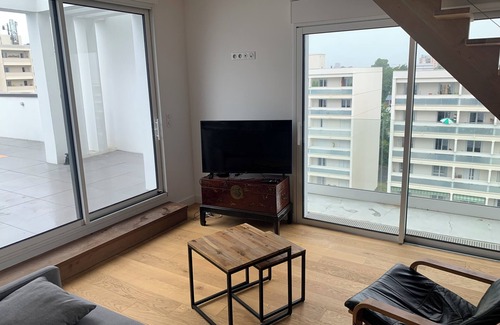 Comprising a large terrace of 92 m2 facing south-west and a loggia of 15 m2 facing north-east with a view of Bordeaux.