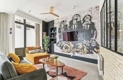 If you're looking for the very essence of the dynamic, friendly atmosphere of the Croulebarbe district, this is the opportunity for you. Immerse yourself in this enchanting apartment that perfectly combines space and modernity, infused with a refined urban touch. Offering an authentic Parisian experience and all the comforts you need, this ground-floor street-level space can accommodate up to 10 people. It features :