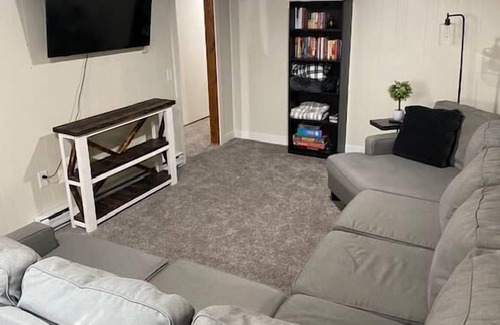 There is space for everyone and every activity. We have three bedrooms on the main floor (a king, queen, and bunk bed with a full and twin) and two more bedrooms in the basement (twin daybed and king bed). Relax in one of two living rooms (upstairs and downstairs) outfitted with Smart TVs and fast wi-fi. Enjoy your meals in the dining room or out on the deck (in the warmer months). There is a full kitchen as well as a gas grill on the deck (in the summer). Downstairs you'll also find a desk with a monitor for working, a gym equipped with some weights and floor mats, and a foosball table.