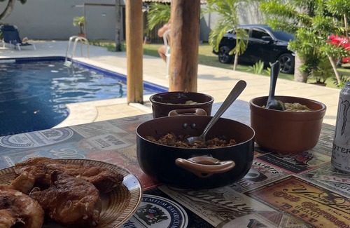 Esta casa de vacaciones tan agradable en Camaçari te permitirá disfrutar de todo tipo de actividades. El alojamiento dispone de garaje. Además, estarás a 2min en coche de Playa de Guarajuba y a 3min en coche de Playa de Genipabu.