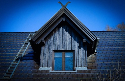 Una estufa de leñador canadiense (Bullerjan) es el punto central de la sala de estar. También en la planta baja hay un pequeño baño, un trastero y un pasillo / guardarropa con escaleras de madera a la planta superior. Hay un dormitorio grande y pequeño, un baño cómodo y moderno con ducha y WC, y un pasillo con escritorio y vista al jardín y al río. Las habitaciones en el piso superior tienen capacidad para 6 personas.