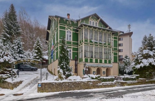 Casa con varias viviendas "Stříbrný pramen", agradable, rústica, individual. En la localidad, a 200 m del centro, lugar soleado, a 500 m de la zona de esquì. Privado: porche (10 m2). En el inmueble: calefacción central. Cambio de sábanas (suplemento extra). Cambio de toallas (suplemento extra). Posibilidad de limpieza (extra). Aparcamiento junto a la casa, posibilidad de aparcamiento extra. Tienda de comestibles 300 m, restaurante 50 m, parada autobús "Janské Lázně - Lesní dům" 300 m, estación de tren "Svoboda nad Úpou" 3.3 km, parque "Farmapark Muchomůrka" 1 km, piscina 7 km, piscina cubierta, piscina termal 400 m. Tenis 1 km, minigolf 400 m, caminos para bicicletas 100 m, teleférico 600 m, telesquí 300 m, telesilla 500 m, telecabina 600 m, pistas de esquí, alquiler de esquís 300 m, escuela de esquí 400 m, escuela de esquí para niños 300 m, pista de trineo, pista de esquí de fondo 700 m. Atracciones en los alrededores: Lanovka na Černou horu 600 m, Janské Lázně Spa, Stezka korunami stromů 1 km, bobová dráha 5 km, Pec pod Sněžkou, Relaxpark, bobová dráha 11 km, Vrchlabí 10 km, Trutnov 12 km, Malá Úpa 15 km, Zoo Dvůr Králové, Adršpach 35, Karpacz 40 km. Zonas de esquí populares fácilmente accesibles: SkiResort ČERNÁ HORA - PEC, Mladé Buky 5 km, Horní Malá Úpa 16 km, Špindlerův Mlýn 30 km. Zona de senderismo krkonošské naučné stezky. A tener en cuenta: sin ascensor. El propietario vive en el mismo inmueble. El apartamento se encuentra en una zona limitada al tráfico.