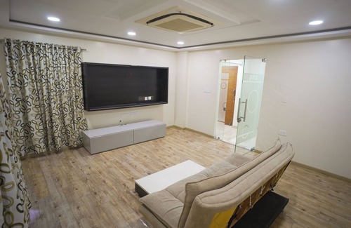 Stay Pride Service Apartments offers your perfect home away from home in Vijayawada, located in a peaceful neighborhood yet close to convention centers, restaurants, malls, and medical facilities. Ideal for families, business travelers, and groups, our fully furnished service apartments combine comfort, convenience, and affordability. Accommodation & Comfort Each apartment is designed with modern décor, spacious living areas, and premium bedding to ensure a relaxing stay. Bedrooms feature soft lighting, elegant curtains, and plush furniture, while the open-plan living and dining area creates a homely atmosphere. All rooms are air-conditioned for year-round comfort. Rooms & Layout Master bedroom with attached bathroom Additional bed (based on room size) Fully equipped kitchenette with refrigerator, induction cooktop & cookware Bright living and dining area Ample storage & wardrobe space Amenities & Facilities High-speed Wi-Fi & flat-screen TV Individual AC units in every room Daily housekeeping & laundry service Refrigerator & kitchen essentials 24/7 CCTV surveillance & free parking Spacious balconies with serene views Location Advantages Stay Pride is strategically located near Vijayawada’s key venues: A Convention Center – 1.5 km A Plus Convention Center – beside property SS Convention Center – 2 km Jyothi Convention Center – 2.5 km Sesha Sai Kalyana Mandapam – 500 m Tree-lined streets, cozy cafés, grocery stores, and pharmacies are within walking distance, ensuring a safe, convenient, and peaceful stay. Whether for a short visit or an extended stay, Stay Pride Service Apartments Vijayawada provides the perfect mix of modern amenities, personalized service, and homely comfort. Book now and experience a memorable stay!