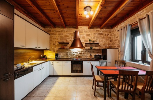 Nuestra villa fue construida en piedra de estilo cretense. Se encuentra a 200 m sobre el nivel del mar, en una tranquila zona residencial a las afueras de la aldea de Prines, a un corto trayecto de Rethymnon. El centro del pueblo de tabernas, cafeterías y pequeñas tiendas de comestibles se puede llegar en pocos minutos a pie. En el pueblo todavía se puede disfrutar de la CRETA TRUE, lejos de llegar desde el turismo ya la vez tan cerca y en unos pocos minutos. En Prines Aunque hay una serie de casas, pero aún mayor que el auténtico ambiente de Creta en el pueblo. Desde la terraza se puede disfrutar de una vista espectacular del mar y las montañas. Por las noches se puede disfrutar de la puesta de sol aquí. Este fascinantes vistas en las fotos remotamente reconocible. Todos los huéspedes que están entusiasmados con estas vistas impresionantes! El 3 dormitorios y 2 baños villa operativa está muy bien equipado y decorado con buen gusto. El entorno de vida único a través de la construcción de piedra maciza encantado. La villa ofrece un alto nivel de confort y gracias a la calefacción por suelo radiante en el invierno un destino turístico acogedor. La chimenea es perfecto para disfrutar de agradables veladas en los meses de invierno, y es en este sentido a la comodidad, ya que las temperaturas del aire son todavía muy agradable en los meses de invierno. Para la casa incluyen una piscina de 35 m grande con piscina para niños y bañera de hidromasaje. Las terrazas están equipadas con muebles de jardín. Una pequeña biblioteca con libros y un equipo de música se proporcionan como una televisión vía satélite con 50 canales internacionales. Conexión a internet wifi es gratuita, pero protegido por contraseña para evitar "abuso" por los niños,. En los últimos años la Villa Olimpia ha ganado un montón de clientes habituales que siempre gusta volver. La casa es ideal para familias, pero también es adecuado para pequeños grupos que quieran pasar unas vacaciones activas en Creta cómo. z. B. Ciclistas, excursionistas y triatletas. También interesado en la cultura, la ubicación es ideal porque se puede llegar a todas las áreas de la isla en un viaje de un día.