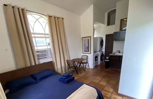 La cocina está equipada con horno, placa de cocina y frigorífico, además de hervidor eléctrico, microondas y utensilios de cocina. Disfruta del wifi gratis y de la televisión. Podrás viajar con poco equipaje, porque tendrás una lavadora y una secadora a tu disposición. Otras comodidades de este alojamiento de 1 dormitorio y 1 baño incluyen ropa de cama, aire acondicionado y una mesa de comedor.