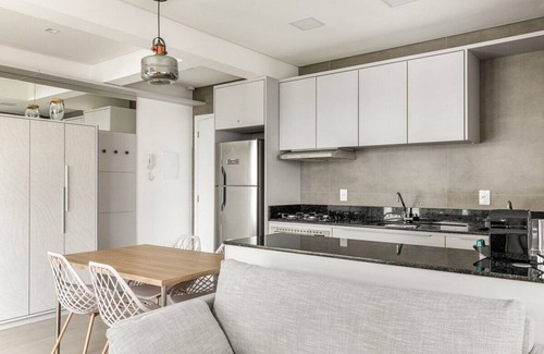 This studio located in the heart of Floripa is the perfect combination of practicality and comfort in one of the quietest areas in Floripa. The apartment is functional and has a full kitchen, full bathroom and air conditioning. The building is modern and has a swimming pool, coworking, laundry room for an additional fee that you can enjoy during your stay. You will be a few meters from Avenida Beira Mar Norte, a great place for walking.