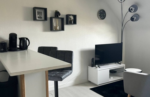 La cocina básica está equipada con placa de cocina y frigorífico, además de cafetera y tetera, hervidor eléctrico y microondas. Disfruta del wifi gratis y de la televisión. El cuarto de baño incluye toallas y papel higiénico. Otras comodidades de este alojamiento de 1 dormitorio y 1 baño incluyen una sala de estar, ropa de cama y calefacción.