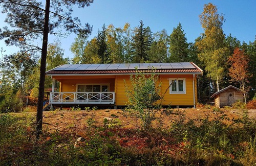 En esta cabaña para familias podrás disfrutar de la pesca, del lago y de mucho más a muy poca distancia. El alojamiento dispone de un aparcamiento en las instalaciones. Además, estarás a 32min en coche de Club de golf Tobo y a 30min en coche de Barco de Canciones.