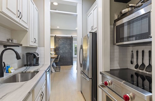 Este alojamiento de 1 dormitorio y 1 baño cuenta con una sala de estar, un sofá cama, aire acondicionado y escritorio. El cuarto de baño incluye un secador de pelo y toallas. Prepara una comida casera en la cocina, equipada con horno, placa de cocina y frigorífico, además de cafetera y tetera, máquina de hielo y microondas. Y gracias a la lavadora y la secadora, podrás viajar con poco equipaje.