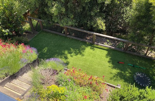 Our home is modern, airy, and bright with a great indoor/outdoor feel. The main level, primary bedroom, upper deck and main deck all have amazing views of San Francisco, Oakland, and the bay, with beautiful sunsets year-round. The main area has an 11-ft ceiling and has floor-to-ceiling glass walls which open up to the kitchen garden and main deck. The house was built in 2018 and has all new appliances and a very high level of fit and finish. The vibe is modern and chill.