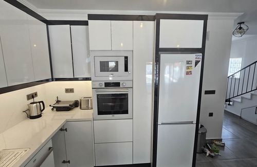 Inside - The ground floor is spacious with brand-new, top quality kitchen that has every modern appliance needed and a kitchen island with stools.