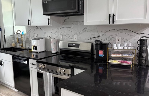stylish and spacious three-story getaway three bedrooms, two full baths. Se encuentra en Norwood. stylish and spacious three-story getaway three bedrooms, two full baths. ofrece alojamiento, con Estacionamiento, Mascota amigable, TV, Entre otras comodidades. Estas características Casa Estacionamiento, Mascota amigable, TV, Para que su estadía sea cómoda.