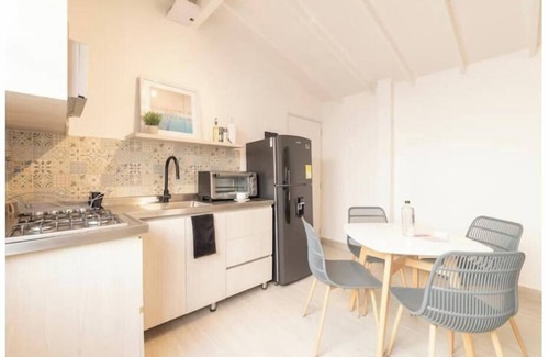 Stay in this beautifully renovated apartment, combining two units for a spacious and stylish retreat. With two bedrooms, two bathrooms, and fully equipped kitchens, it’s perfect for families or groups. Located in the safe El Garabato neighborhood, just a block from the stunning UVA El Tesoro park and close to El Tesoro Mall. Note: third floor, no elevator, and parking off-site. Inquire for parking options.