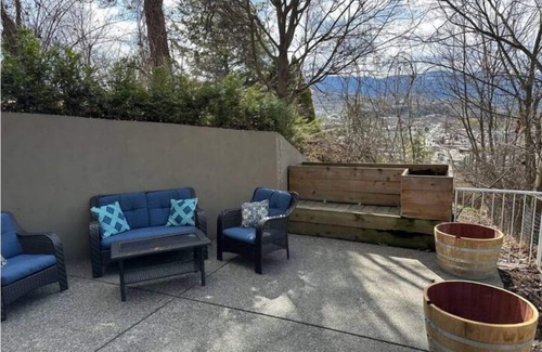 Guests can pull right into their own designated parking spot in the driveway, conveniently located in front of the garage and just steps from the walkway to the suite. ( More than one vehicle?Additional parking is available on the street for free) Down at the suite, you’ll find a private patio perfect for morning coffee or evening unwinding. Enjoy the convenience of your own in-suite laundry, dedicated Wi-Fi, and—just for fun—two paddle boards available upon request from your lovely hosts. Whether you’re here to relax or explore, we’ve got you covered!