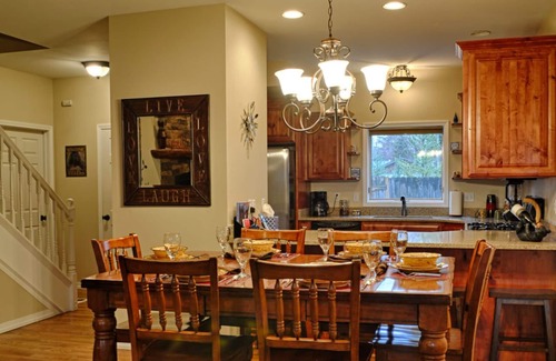 Su próxima casa de vacaciones se encuentra a solo 1,6 km del centro de Whitefish, MT, y justo al lado del servicio gratuito de traslado de esquí a Whitefish Mountain Ski Resort (6,5 millas de distancia). Nuestra casa es una casa adosada encantadora, espaciosa, actualizada, con 3 dormitorios, 2. 5 baños y capacidad para 10 de sus familiares y amigos más cercanos. Tenemos una cocina totalmente equipada para todas sus necesidades de cocción, varios juegos de vasos y vajillas, encimeras de granito, estufa / horno de acero inoxidable, refrigerador y lavaplatos, y suministramos café recién molido y edulcorantes para comenzar su mañana. El comedor tiene una mesa High-Top para 6-10 personas con 6 sillas con respaldo alto y 4 taburetes que se ajustan cómodamente a la mesa o se suben a la barra del bar. Nuestra unidad está equipada con aire acondicionado central, chimenea de gas, bañera de hidromasaje privada para 7 personas en la parte posterior, Wi-Fi seguro, TV de pantalla plana por cable, garaje climatizado con bastidores de esquí / snowboard y secador de botas. Suministramos secadores de pelo, jabones y champú en ambos baños, aceptamos perros y tenemos una silla elevadora para el pequeño. Hay una gran sala de lavandería / barro con lavadora y secadora y suministramos detergentes y suavizantes para su conveniencia. La sala de estar cuenta con un sofá de cuero y un sillón de dos plazas muy cómodos, una relajante silla y otomana de cuero y una acogedora chimenea de gas, TV de pantalla plana por cable y reproductor de DVD.