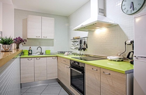 El apartamento está situado en la planta baja y cuenta con 2 dormitorios, TV de pantalla plana y cocina totalmente equipada con microondas, nevera, lavadora y tostadora. Las toallas y la ropa de cama están incluidas.