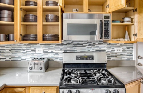 Al instalarte en este alojamiento, encontrarás una sala de estar y aire acondicionado. Disfruta del wifi, de la televisión y del reproductor estéreo. El cuarto de baño incluye un secador de pelo y toallas. Prepara una comida casera en la cocina, equipada con horno, placa de cocina y frigorífico, además de cafetera y tetera, microondas y utensilios de cocina. Y como podrás aprovechar la lavadora y la secadora, no te hará falta llevar mucho equipaje. Otras comodidades incluyen ropa de cama, una tabla de planchar, servicio de limpieza disponible a petición y calefacción.