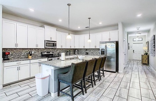 En esta casa de vacaciones para familias podrás disfrutar del esquí acuático, de paseos en moto de agua y de mucho más a muy poca distancia. Si subes al coche, estarás a 20min en coche de Walt Disney World® Resort y a 17min en coche de Complejo de entretenimiento Old Town. Además, el alojamiento dispone de aparcamiento en las instalaciones donde podrás dejar tu vehículo.