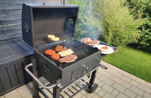 In harmony with yourself all year round - enjoy peace, wellness and nature... The luxury ground floor apartment "Sweet Spot" in Villa Harmonie has 78 m² of comfortable living space, 2 bedrooms (LED TVs, 43 inches), 1 bathroom with sauna, living & dining area with Smart TV (50 inches) and gas fireplace. The open, fully equipped kitchen (plus Nespresso machine) makes the hearts of amateur chefs beat faster. Free WiFi and insect protection in all rooms are also part of the facilities. 2 terraces (south and west facing) with garden furniture, charcoal grill & beach chair are waiting for you. The in-house storage shed as well as the washing machine and dryer in the utility room are available to you free of charge. 1 parking space is located directly at the house. From April 2022, an Easee charging robot with 11 KW charging power and a Type 2 charging connection will be available to you.