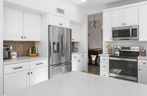 5 BR / 3 BA, tiene capacidad para 14 personas (12 adultos) cerca de todo SI RESERVAS MENOS DE 30 DÍAS ANTES, ¡Háznos una oferta! Bienvenido a "StayWithStyleScottsdale!" Somos PROPIOS y administramos personalmente 9 propiedades, todas ubicadas en Scottsdale, por lo que trabajará con los responsables de la toma de decisiones y no con compañías de gestión de terceros. 6 de las 9 propiedades están a poca distancia de nuestra casa y las otras 3 están a 10 minutos en automóvil. Debido a esto, nos encargamos de administrarlos y, si es necesario, podemos acceder a cualquiera de ellos en cuesti��n de minutos. Entre nuestras 9 propiedades, tenemos más de 500 comentarios de 5 estrellas y estamos orgullosos de asegurarnos de que todas las estancias de nuestros hu��spedes en Scottsdale sean fantásticas. Esta es una propiedad increíble a aproximadamente 1 milla del TPC donde se juega el Waste Management Phoenix abierto. En el interior, hay más de 2850 pies cuadrados de espacio habitable con decoración / muebles contemporáneos que mantienen su comodidad y disfrute en mente. 3 de las habitaciones cuentan con camas extra grandes con colchones nuevos de alta calidad. El cuarto tiene una cama queen y el quinto dormitorio tiene 2 juegos de literas dobles (4 camas en total) para los niños con los mismos colchones de alta calidad. Sabemos que te encantará deslizarte debajo de las sábanas 100% de algodón recién planchadas en las camas, ¡y siempre ofrecemos toallas de baño de lujo, también! Hay 8 televisores de pantalla plana completamente nuevos, (48 'en el master, 40' en cada una de las habitaciones restantes, 65 'en la gran sala y 60' en la sala de estar), así como futbolín y mesa de billar para el entretenimiento. CONFIGURACIÓN DEL DORMITORIO • Dormitorio 1 arriba: Master Suite; Cama King, baño principal en suite, TV de 55 ", vestidor grande, capacidad para 2 personas. • Dormitorio 2 en la planta superior: cama doble, baño compartido en el pasillo completo, TV de 42 ", capacidad para 2 personas • Dormitorio 3 en la planta superior: cama King, baño compartido en el pasillo completo, TV de 42 ", capacidad para 2 personas • Dormitorio 4 en la planta superior: 2 camas literas, baño compartido en el pasillo completo, TV de 42 ", capacidad para 4 personas • Dormitorio 5 en la planta principal: cama King, baño compartido de planta baja de 3/4, TV de 55 ", capacidad para 2 personas Este patio incluye elegantes muebles de exterior y una zona de comedor al aire libre. La piscina privada climatizada es un placer para sumergirse después de descansar junto a la piscina. En el lado este del patio, hay un enorme voladizo de 13 pies que proporciona toneladas de sombra adicional si se desea. También es una valla de seguridad de la piscina para mantener a sus hijos seguros. El patio trasero también ofrece calentadores de torre, una barbacoa, una chimenea de leña e iluminación profesional para jardines. Pasee por el cinturón verde del Westin Kierland golf resort hasta el parque. La casa está a menos de una milla de los bienes comunes exclusivos de Kierland y del nuevo centro comercial Scottsdale Quarter, que ofrece muchas tiendas exclusivas y restaurantes de alta gama. También se encuentra junto al campo de golf de Kierland, de 27 hoyos y clase mundial, a pocos pasos del parque. Tienda de comestibles, farmacia, delicatessen, Starbucks, etc. También a menos de 1 mi de casa. Ubicación, ubicación, ubicación! A continuación, se incluye una lista de los servicios que incluimos
