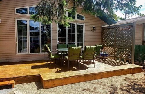 Nuestra tranquila cabaña Lazy Day Haven es una casa turística con licencia con la ciudad de Sylvan Lake. Se encuentra a 1/2 cuadra de la playa, parque infantil, restaurantes y pubs. Tiene una suite principal principal e independiente, perfecta para que las familias estén juntas y, sin embargo, todos tienen su propio espacio. Cuenta con 4 habitaciones, 3 arriba y 1 abajo, con 2 futones en la suite inferior. Tenemos 3 baños completos, 2 arriba y 1 abajo. 2 cocinas totalmente equipadas y lavandería. Disfrute del fuego, barbacoa y muebles de patio mientras está al aire libre.