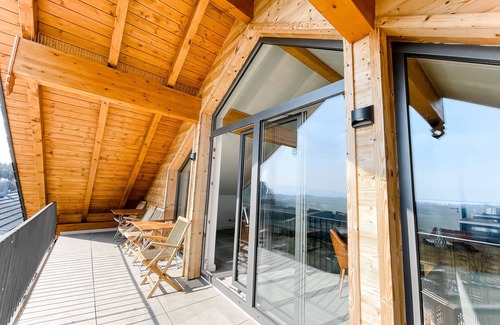 Apague la vida cotidiana en la suite de tía Ida con una vista única al lago y a la montaña. El ático de 80 m2 con un amplio balcón interior en el nuevo edificio, cocina abierta totalmente equipada, un amplio baño con bañera, un segundo baño amplio con ducha de efecto lluvia, dos dormitorios y una habitación adicional con lavadora y secadora, no deja nada que desear. El apartamento está diseñado para 2 amigos, o una pareja con 2 hijos, o si vienes en grupo y alquilas otro apartamento.